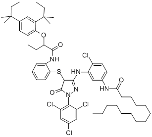 Chemical Name:1-(2,4,6-Trichlorophenyl)-3-(5-tetradecanamido-2-chloroanilino)-4-(2- (alpha-(2,4-di-tert- pentylphenoxy)butyramido)phenylthio)-5-pyrazolone